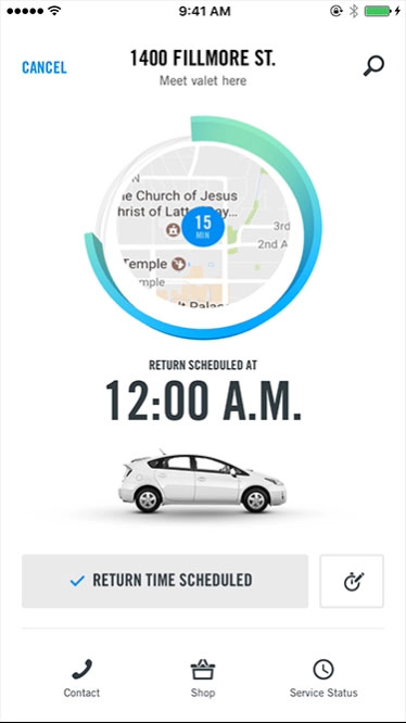 This meant that both Rally’s design and engineering teams would be involved with creating a high-quality prototype, which would allow the Luxe team to “cherry pick” elements that were actually in native code. We built a fluid prototype that made requesting a valet, and receiving notifications throughout the process, much more transparent to the user. We dialed up the playful ‘fiddle’ factor as well by adding some delightfully animated elements to guide the user through the process. Some concepts, such as the 3D timer that morphed into a road and reacted to the accelerometer, required us to do part of the development in OpenGL.